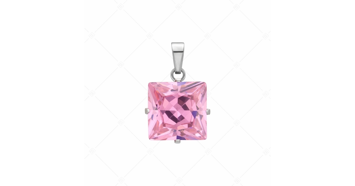 Pendentif carré en pierre de zirconium rose pâle. Bijoux en acier inoxydable médical 316L, qui, grâce à son matériau, ne s'use pas et ne se décolore pas.