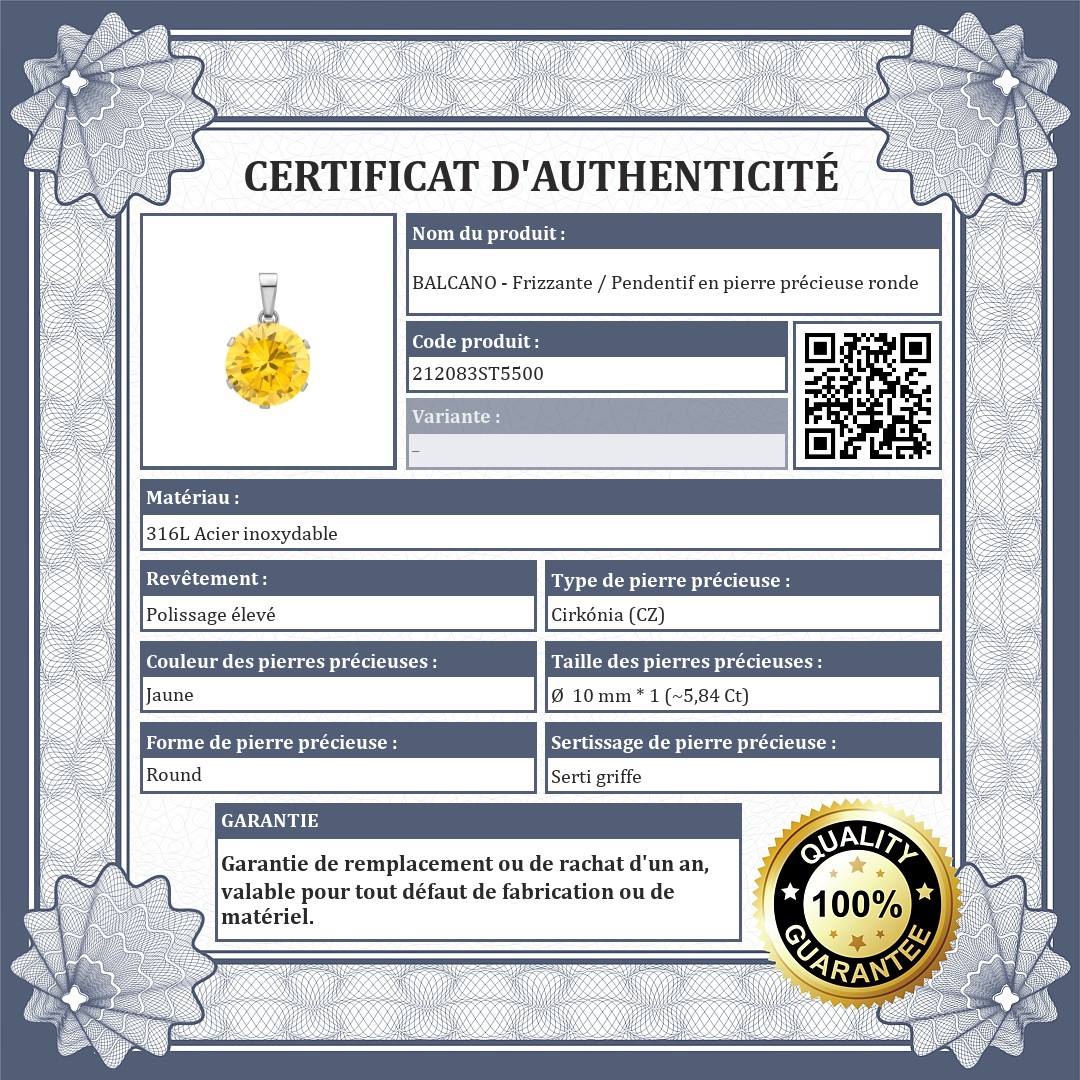 Pendentif en zirconium rond jaune d'or. Bijoux en acier inoxydable de qualité médicale 316L, qui ne s'usera pas et ne se décolorera pas grâce à son matériau.