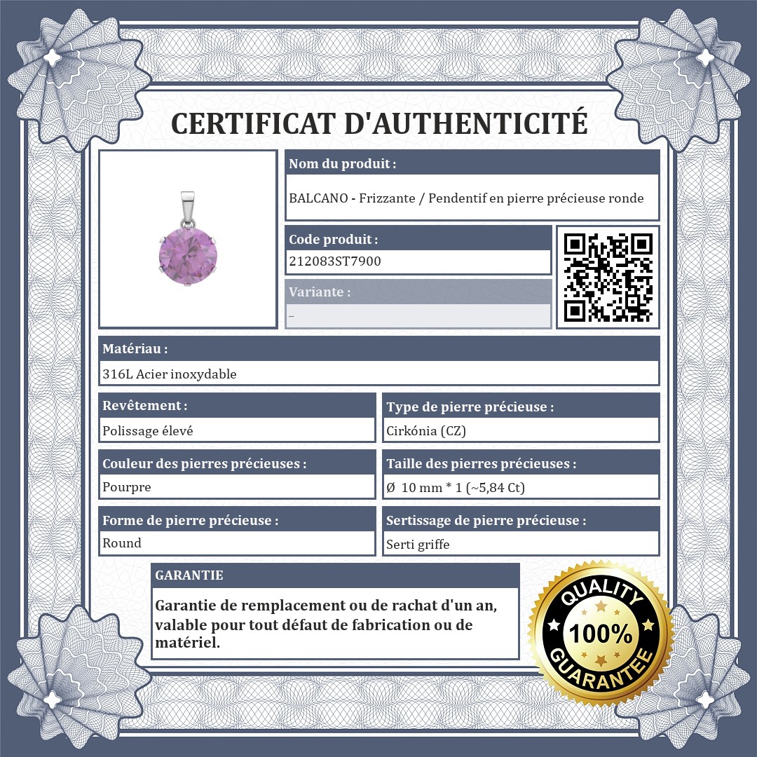Pendentif en zirconium rond améthyste violet. Bijoux en acier inoxydable de qualité médicale 316L, qui ne s'usera pas et ne se décolorera pas grâce à son matériau.