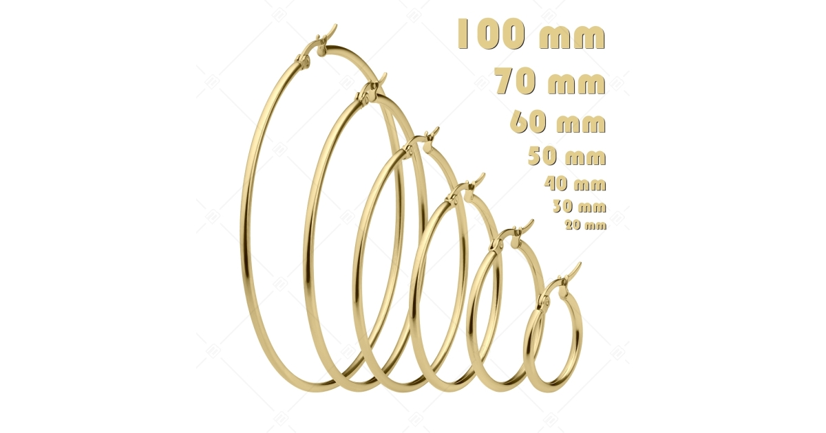 Boucles d'oreilles créoles classiques et à la mode. Bijoux en acier inoxydable médical 316L, qui, grâce à son matériau, ne s'use pas et ne se décolore pas. Plaqué or 18K, disponible en différentes tailles.
