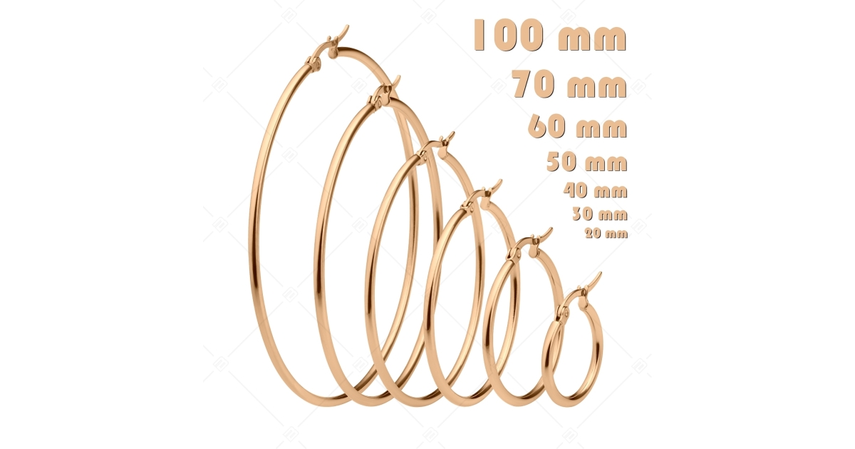 Boucles d'oreilles créoles classiques et à la mode. Bijoux en acier inoxydable médical 316L, qui, grâce à son matériau, ne s'use pas et ne se décolore pas. Plaqué or rose 18K, disponible en différentes tailles.