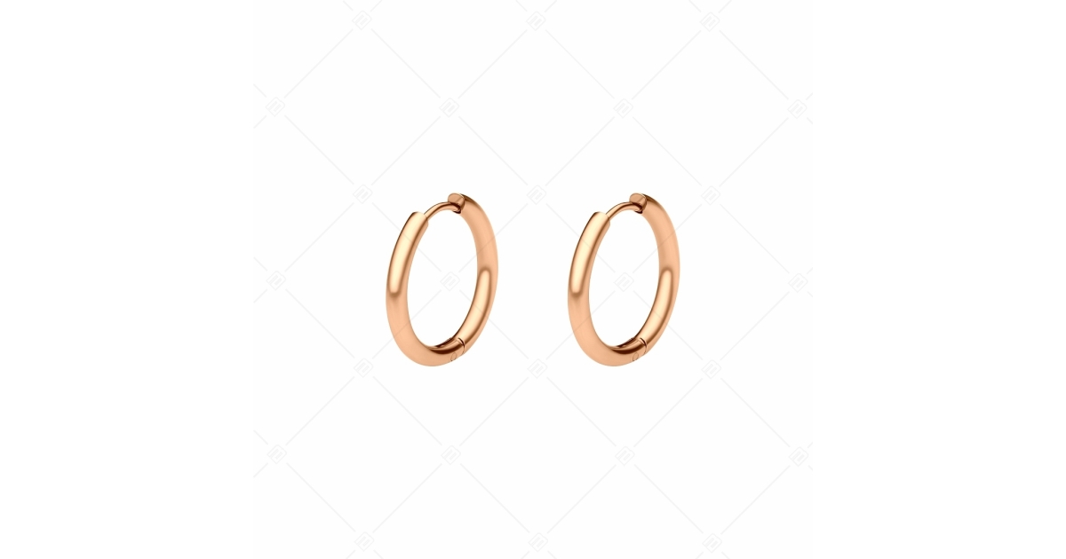 Boucles d'oreilles créoles, bijou en acier inoxydable médical 316L anti-allergique, plaqué or rose 18K, en tailles de 15 mm et 20 mm de diamètre.
