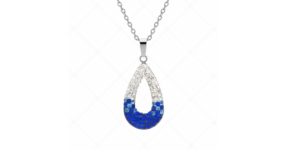 Collier d'ancre de taille réglable avec un pendentif en forme de larme serti de cristaux tchèques clairs bleus scintillants. Bijoux en acier inoxydable de qualité médicale 316L, qui grâce à son matériau est extrêmement durable, ne s'use pas et ne se décolore pas.