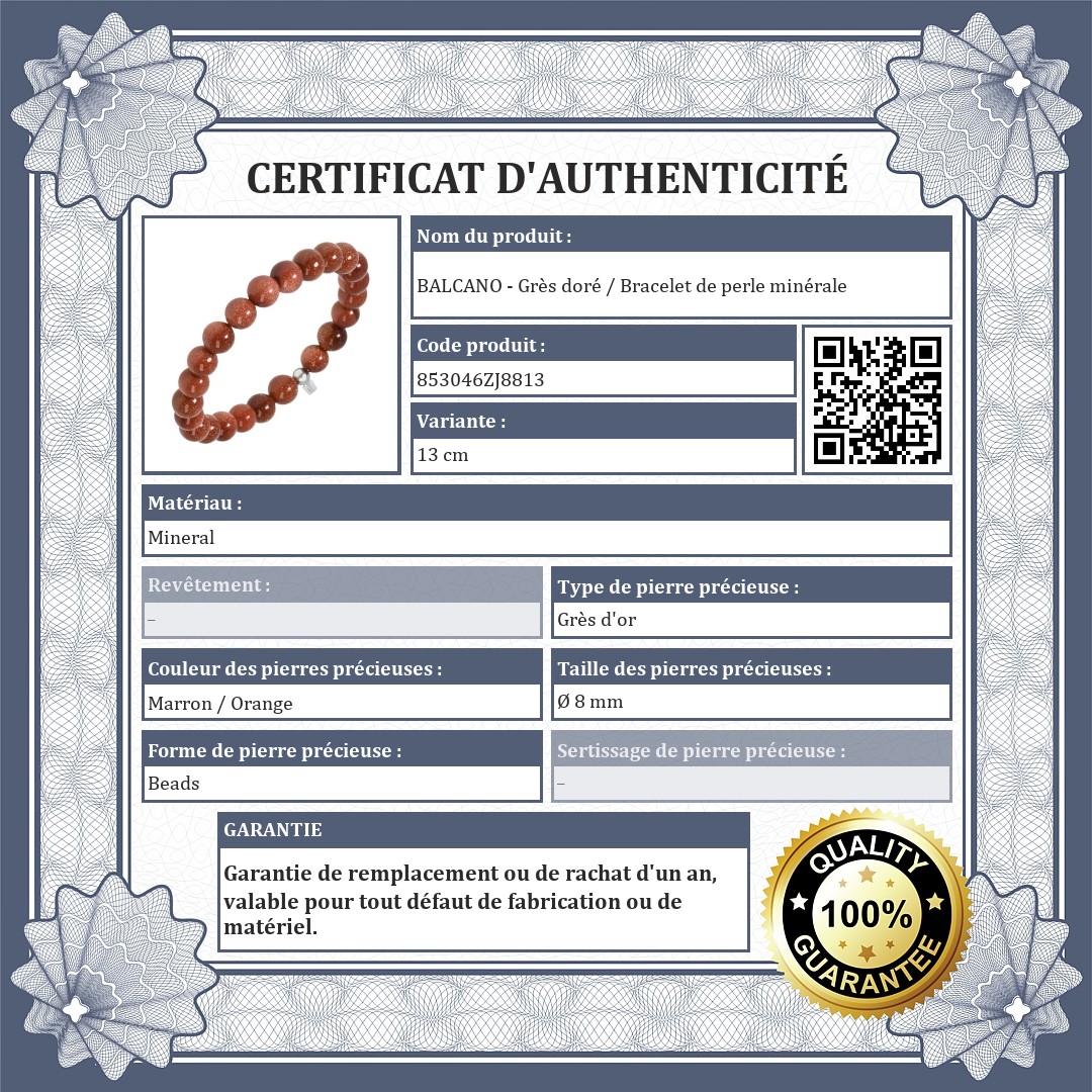 Bracelet de perles minérales en grès doré, identique à l'original.