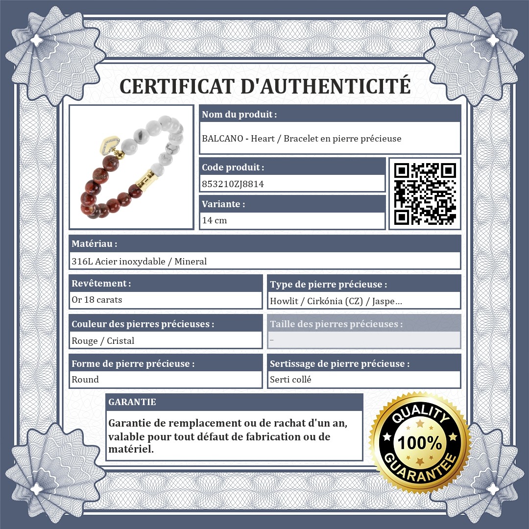 | Type de pierre précieuse: | Howlit / Cirkónia (CZ) (Zircone cubique) / Jaspe rouge |