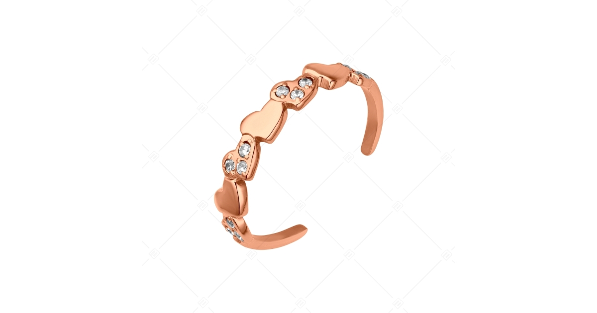 BALCANO - Hearts / Bague d'orteil en acier inoxydable en forme de nombreux cœurs avec pierres en zinconia, plaqué or ros