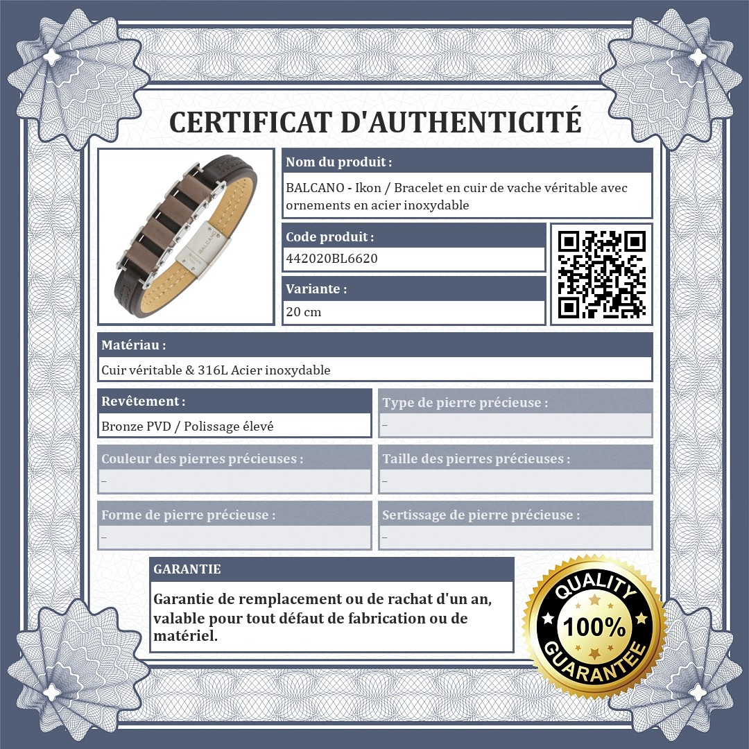 BALCANO - Ikon / Bracelet en cuir de vache véritable avec ornements en acier inoxydable
