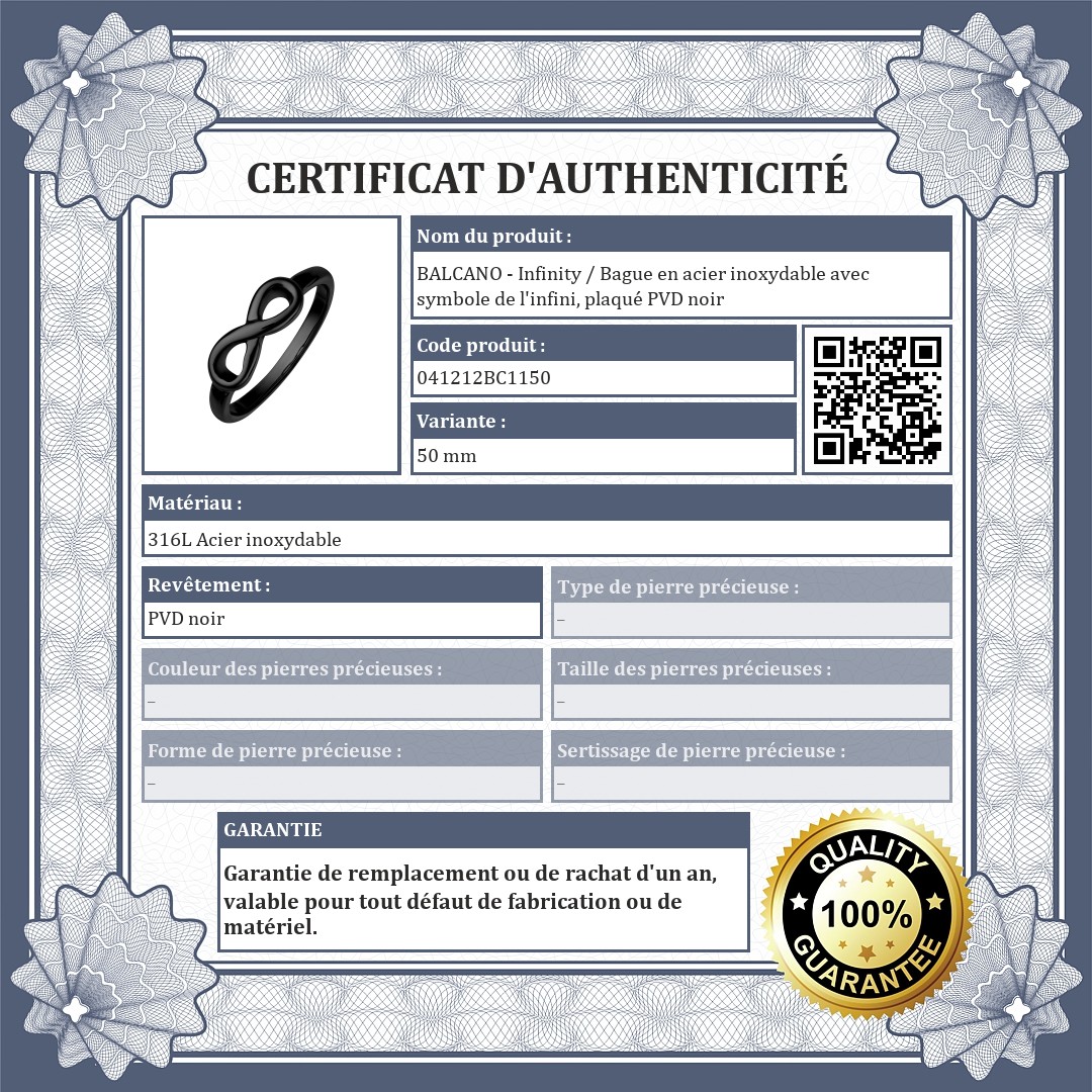 BALCANO - Infinity / Bague en acier inoxydable avec symbole de l'infini, plaqué PVD noir