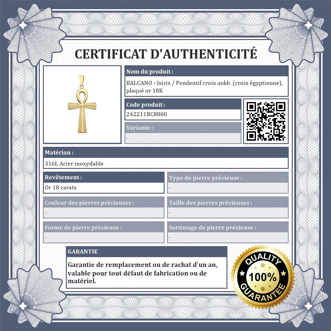 BALCANO - Isiris / Pendentif croix ankh (croix égyptienne), plaqué or 18K