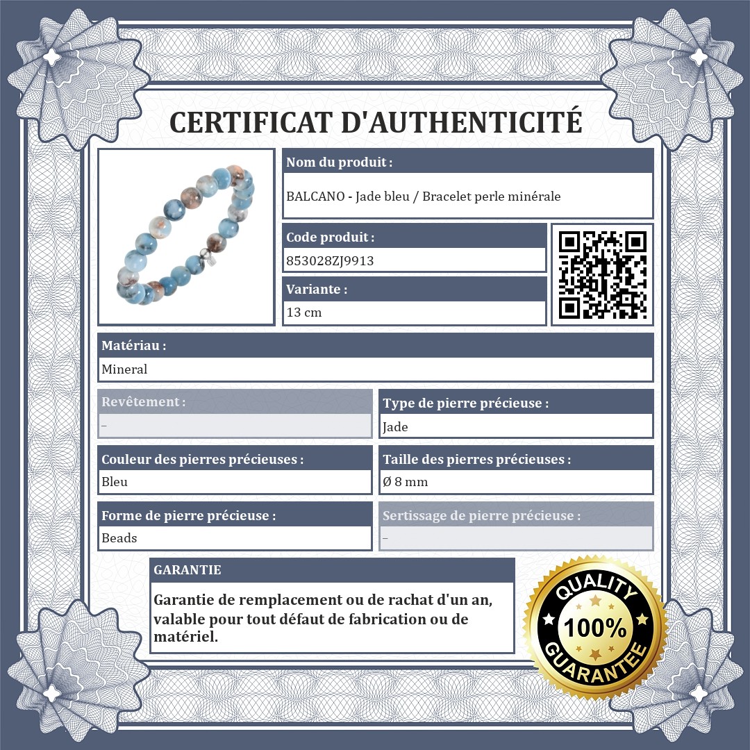 BALCANO - Jade bleu / Bracelet perle minérale