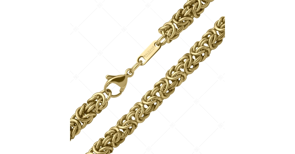 BALCANO - King's Braid / Chaîne du roi à maillon rond, collier byzantin en acier inoxydable plaqué or 18K - 6 mm