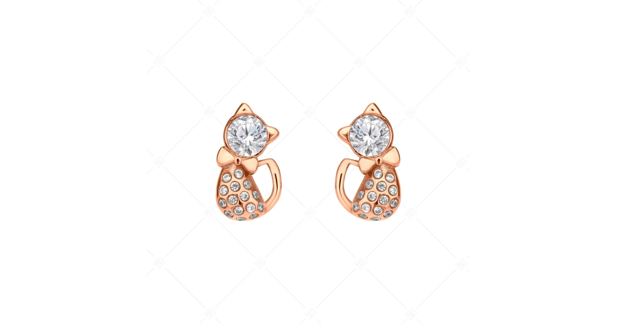 BALCANO - Kitten / Boucles d'oreilles forme chat décoré avec pierres précieuses zirconium, plaqué or rose 18K