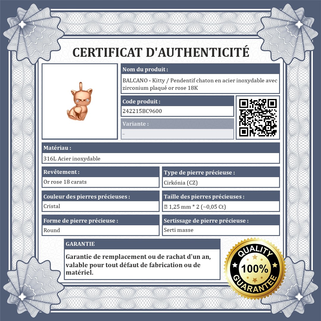 BALCANO - Kitty / Pendentif chaton en acier inoxydable avec zirconium plaqué or rose 18K