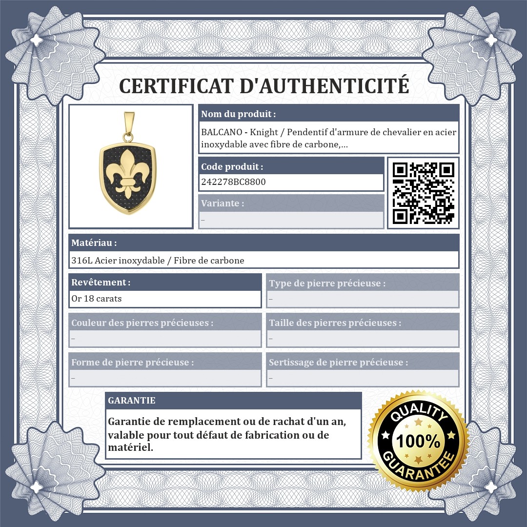 BALCANO - Knight / Pendentif d'armure de chevalier en acier inoxydable avec fibre de carbone, plaqué or 18K