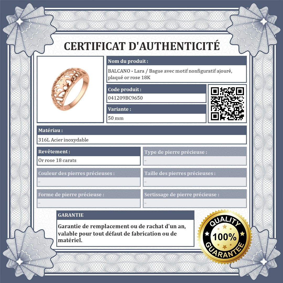 BALCANO - Lara / Bague avec motif nonfiguratif ajouré, plaqué or rose 18K