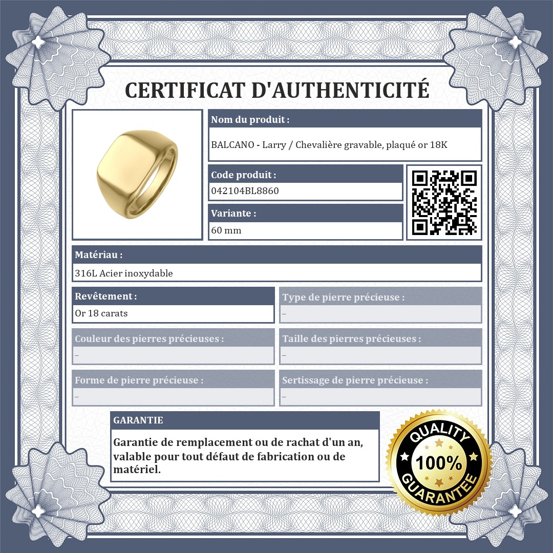 BALCANO - Larry / Chevalière gravable, plaqué or 18K