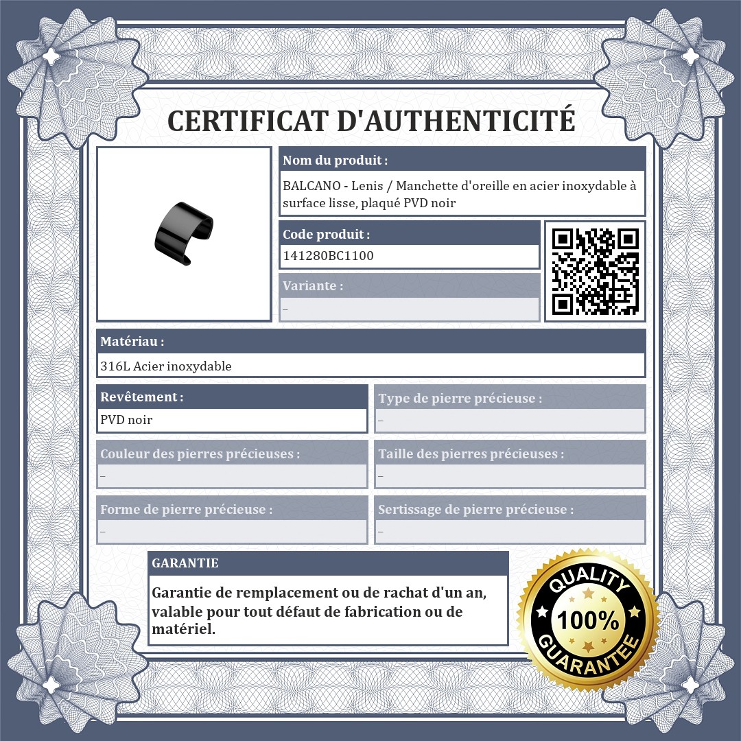 BALCANO - Lenis / Manchette d'oreille en acier inoxydable à surface lisse, plaqué PVD noir