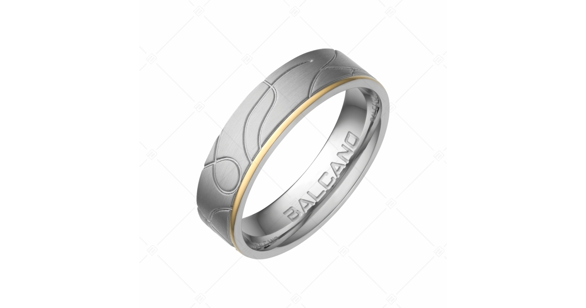 BALCANO - Linea / Bague en acier inoxydable motivée avec finition polie mate, plaqué or 18K
