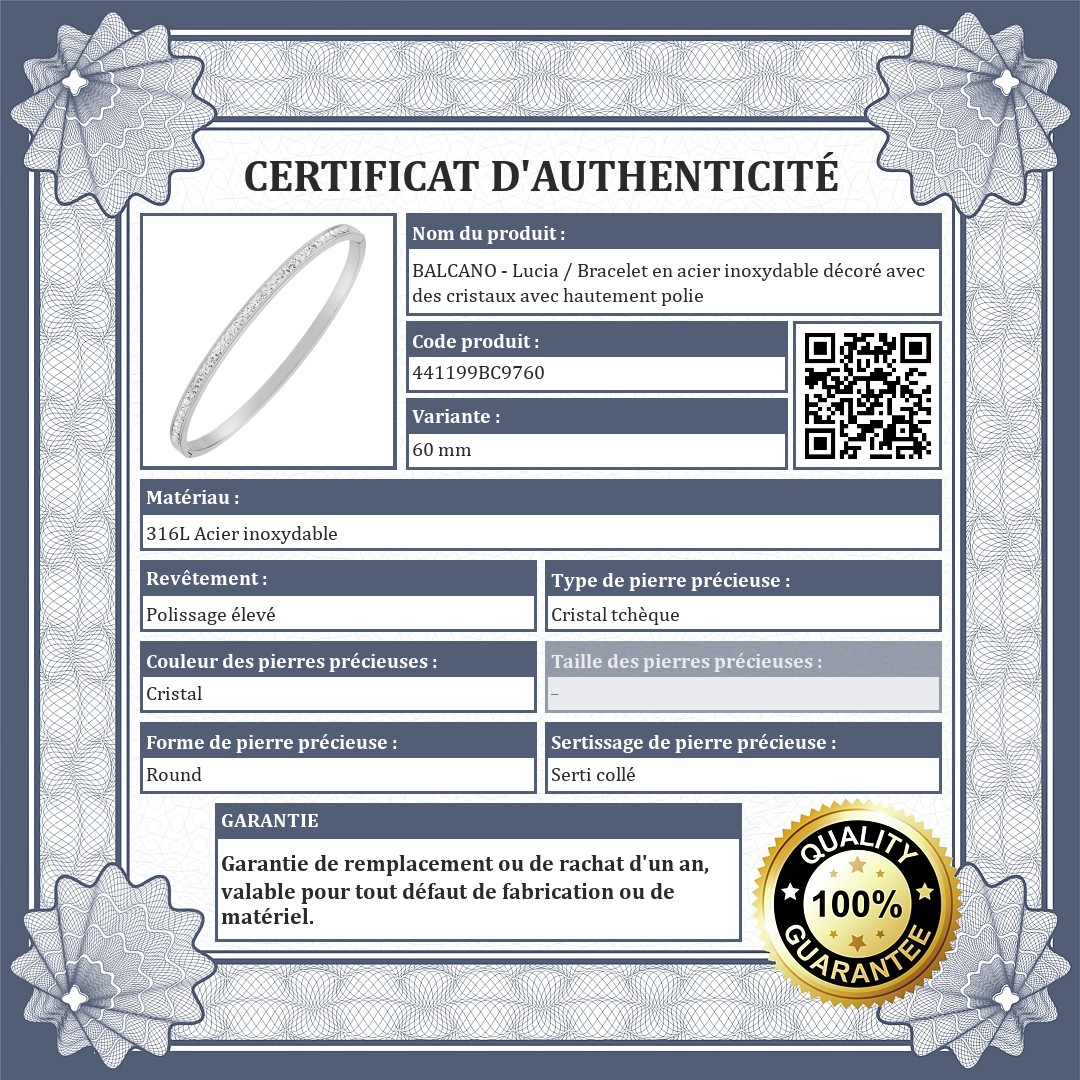 BALCANO - Lucia / Bracelet en acier inoxydable décoré avec des cristaux avec hautement polie