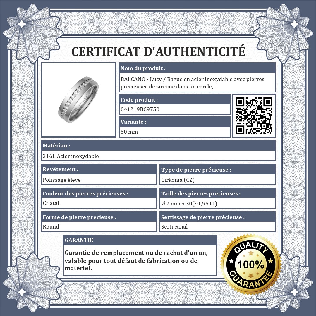 BALCANO - Lucy / Bague en acier inoxydable avec pierres précieuses de zircone dans un cercle, avec hautement polie