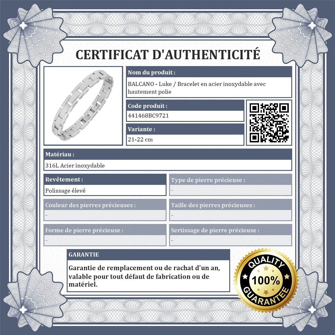BALCANO - Luke / Bracelet en acier inoxydable avec hautement polie