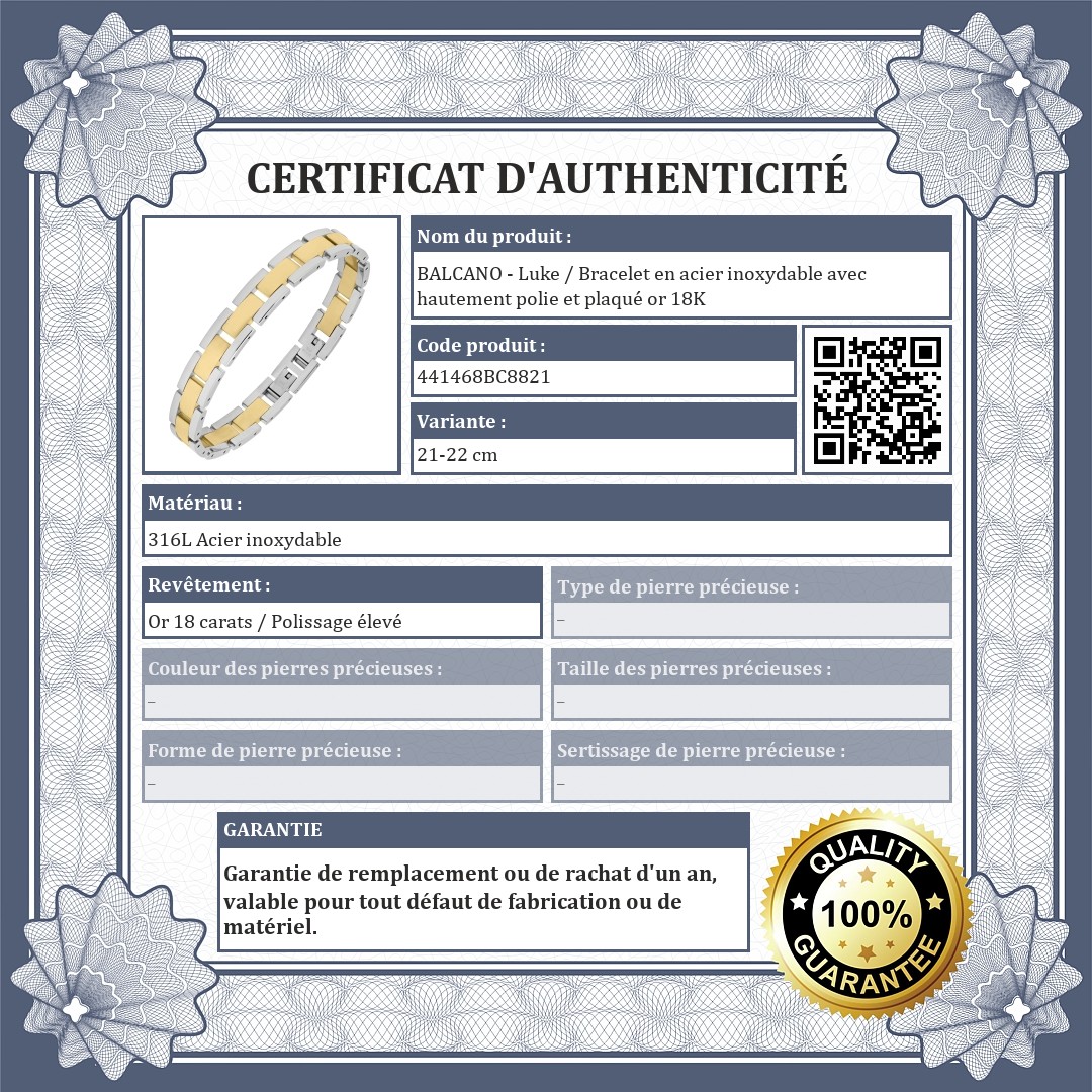 BALCANO - Luke / Bracelet en acier inoxydable avec hautement polie et plaqué or 18K
