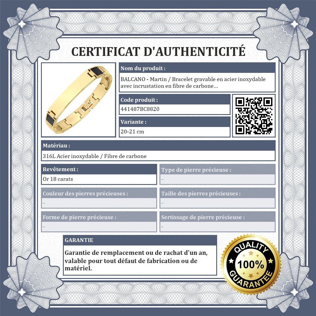 BALCANO - Martin / Bracelet gravable en acier inoxydable avec incrustation en fibre de carbone et plaqué or 18K