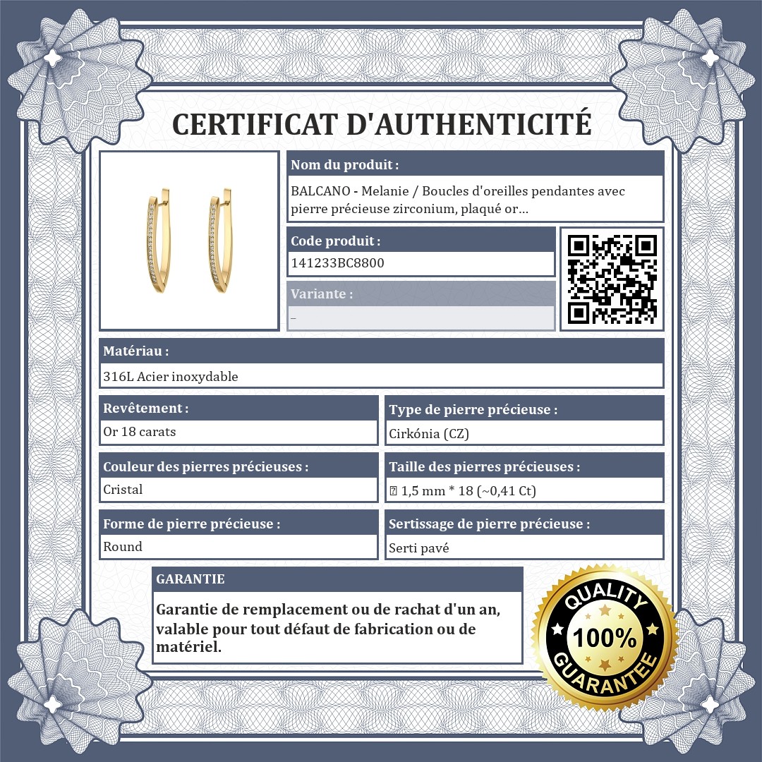 BALCANO - Melanie / Boucles d'oreilles pendantes avec pierre précieuse zirconium, plaqué or 18K
