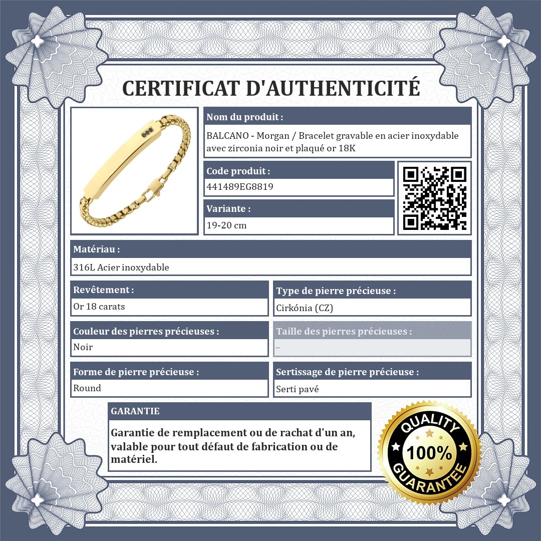 BALCANO - Morgan / Bracelet gravable en acier inoxydable avec zirconia noir et plaqué or 18K