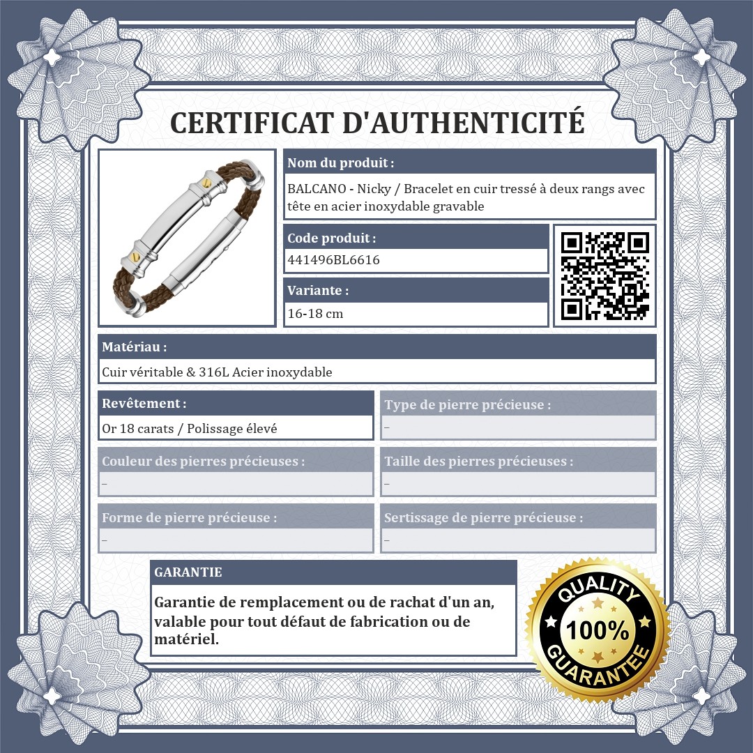 BALCANO - Nicky / Bracelet en cuir tressé à deux rangs avec tête en acier inoxydable gravable