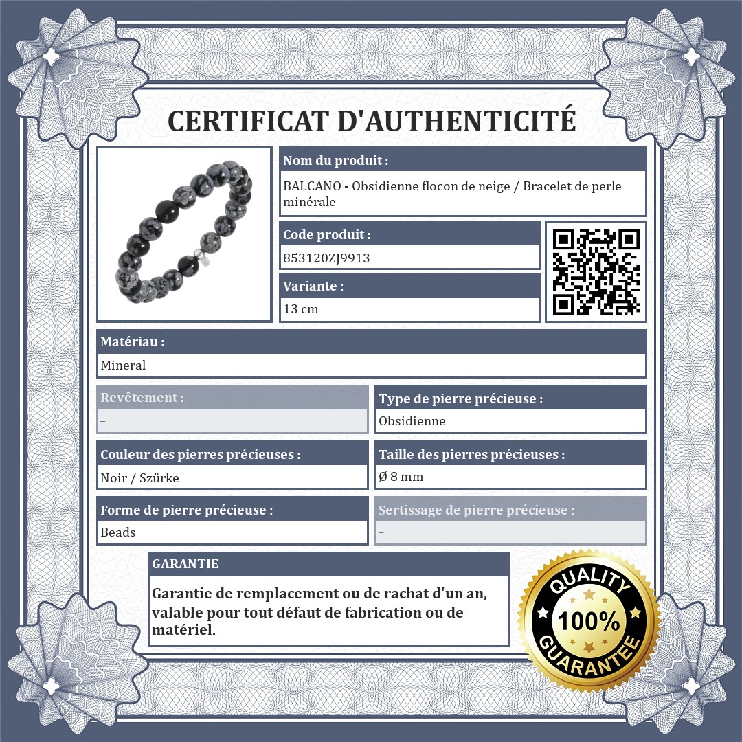 BALCANO - Obsidienne flocon de neige / Bracelet de perle minérale