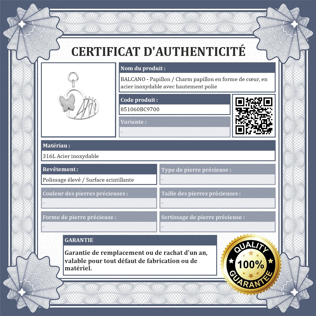 BALCANO - Papillon / Charm papillon en forme de cœur, en acier inoxydable avec hautement polie