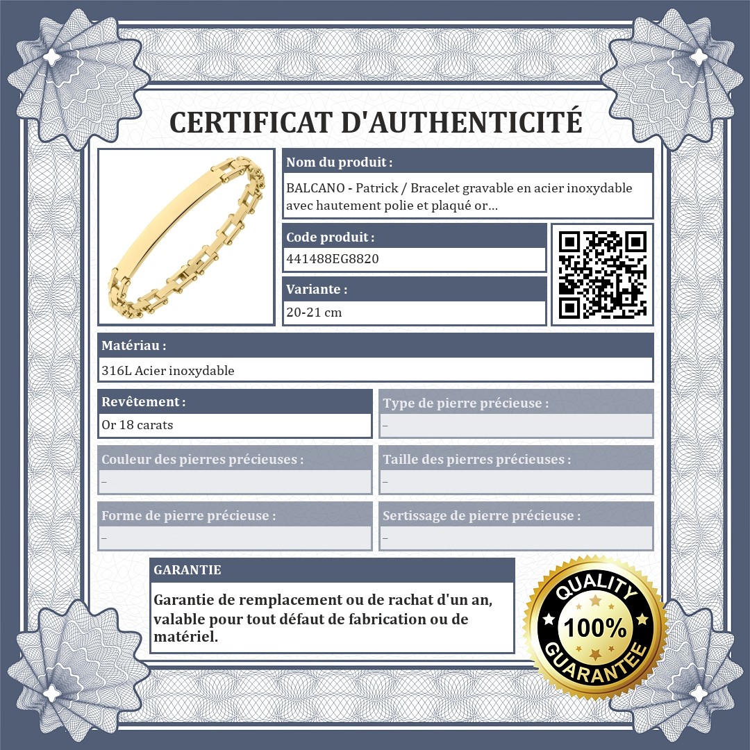 BALCANO - Patrick / Bracelet gravable en acier inoxydable avec hautement polie et plaqué or 18K
