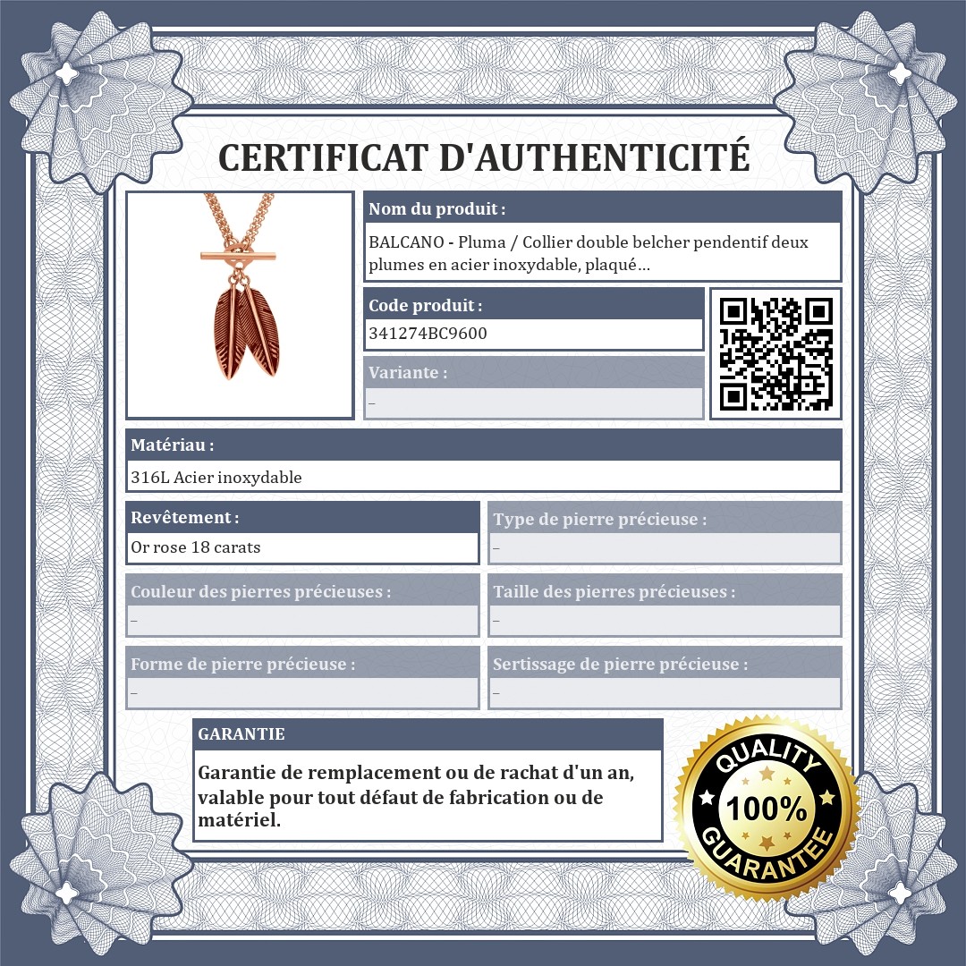 BALCANO - Pluma / Collier double belcher pendentif deux plumes en acier inoxydable, plaqué or rose 18K