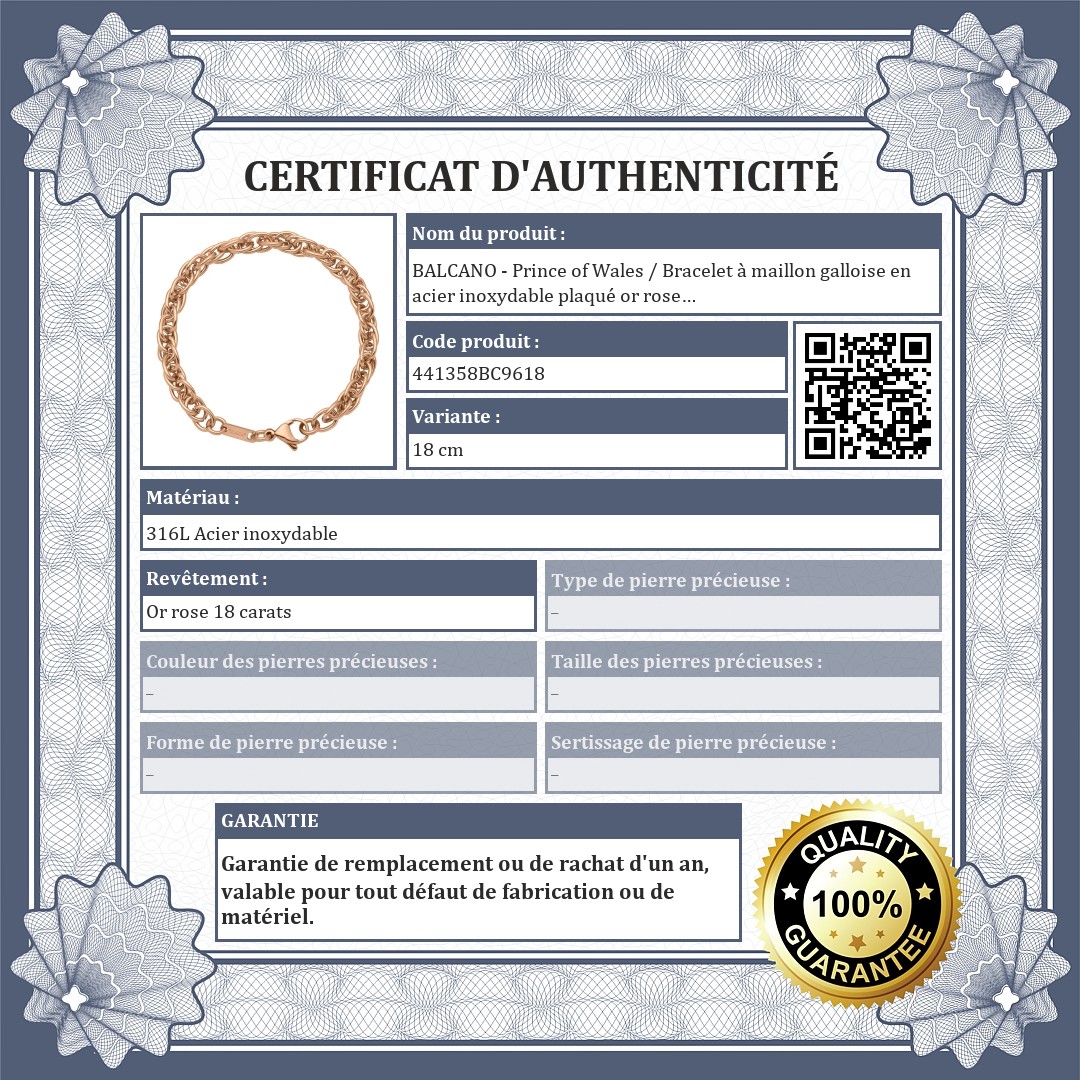 BALCANO - Prince of Wales / Bracelet à maillon galloise en acier inoxydable plaqué or rose 18K - 6 mm