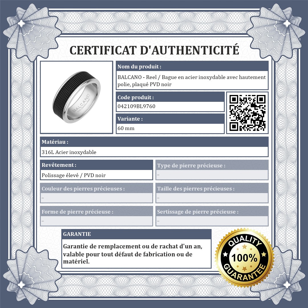 BALCANO - Reel / Bague en acier inoxydable avec hautement polie, plaqué PVD noir