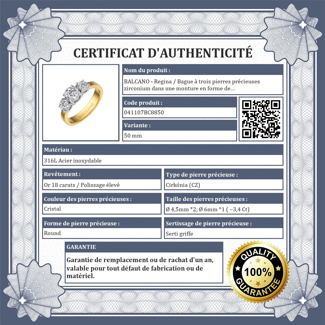 BALCANO - Regina / Bague à trois pierres précieuses zirconium dans une monture en forme de couronne