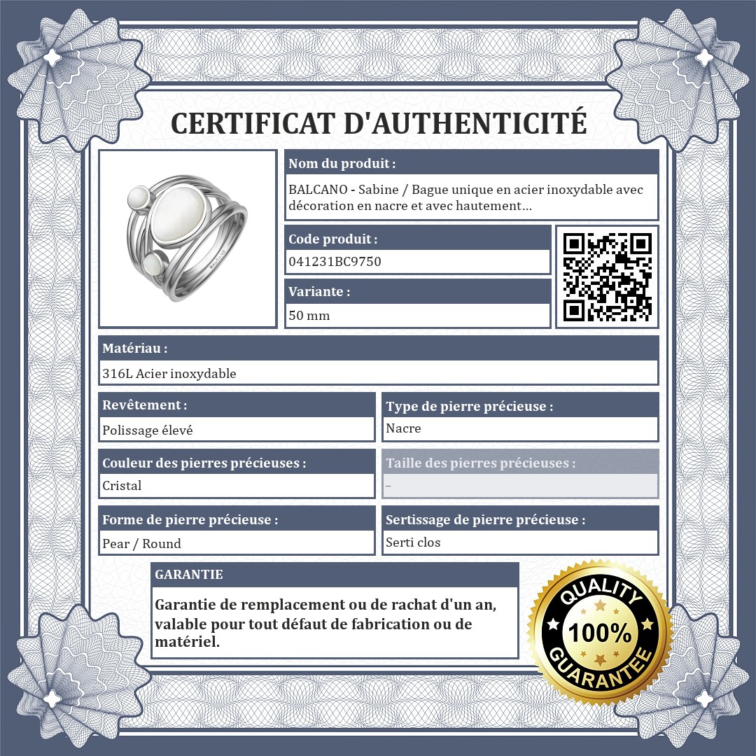 BALCANO - Sabine / Bague unique en acier inoxydable avec décoration en nacre et avec hautement polie