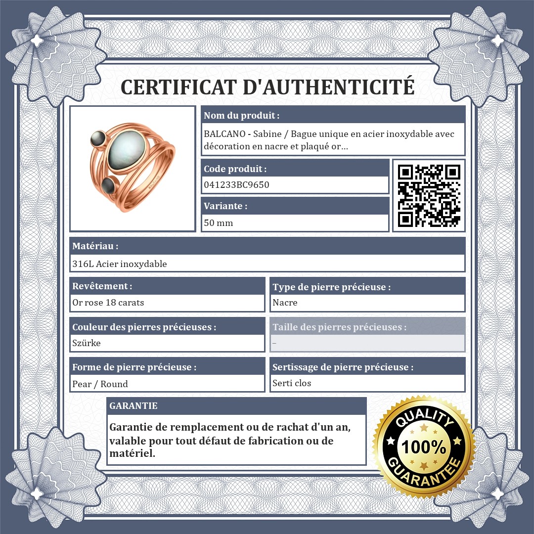 BALCANO - Sabine / Bague unique en acier inoxydable avec décoration en nacre et plaqué or 18K