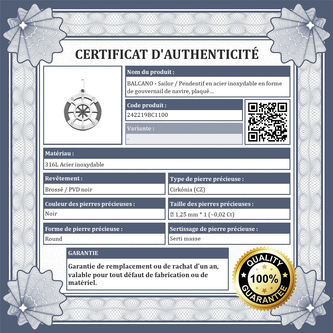 BALCANO - Sailor / Pendentif en acier inoxydable en forme de gouvernail de navire, plaqué PVD noir