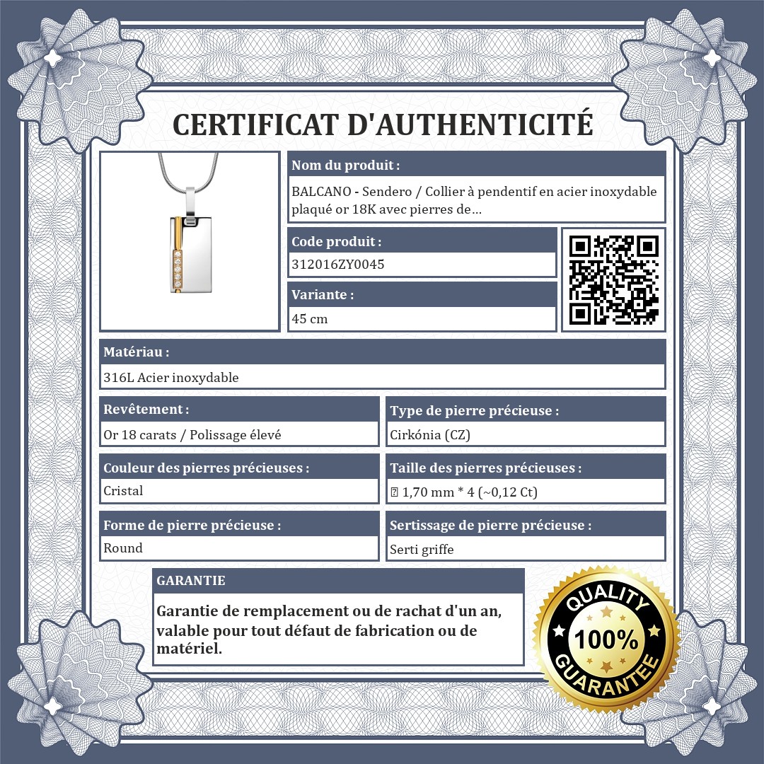 BALCANO - Sendero / Collier à pendentif en acier inoxydable plaqué or 18K avec pierres de zircone