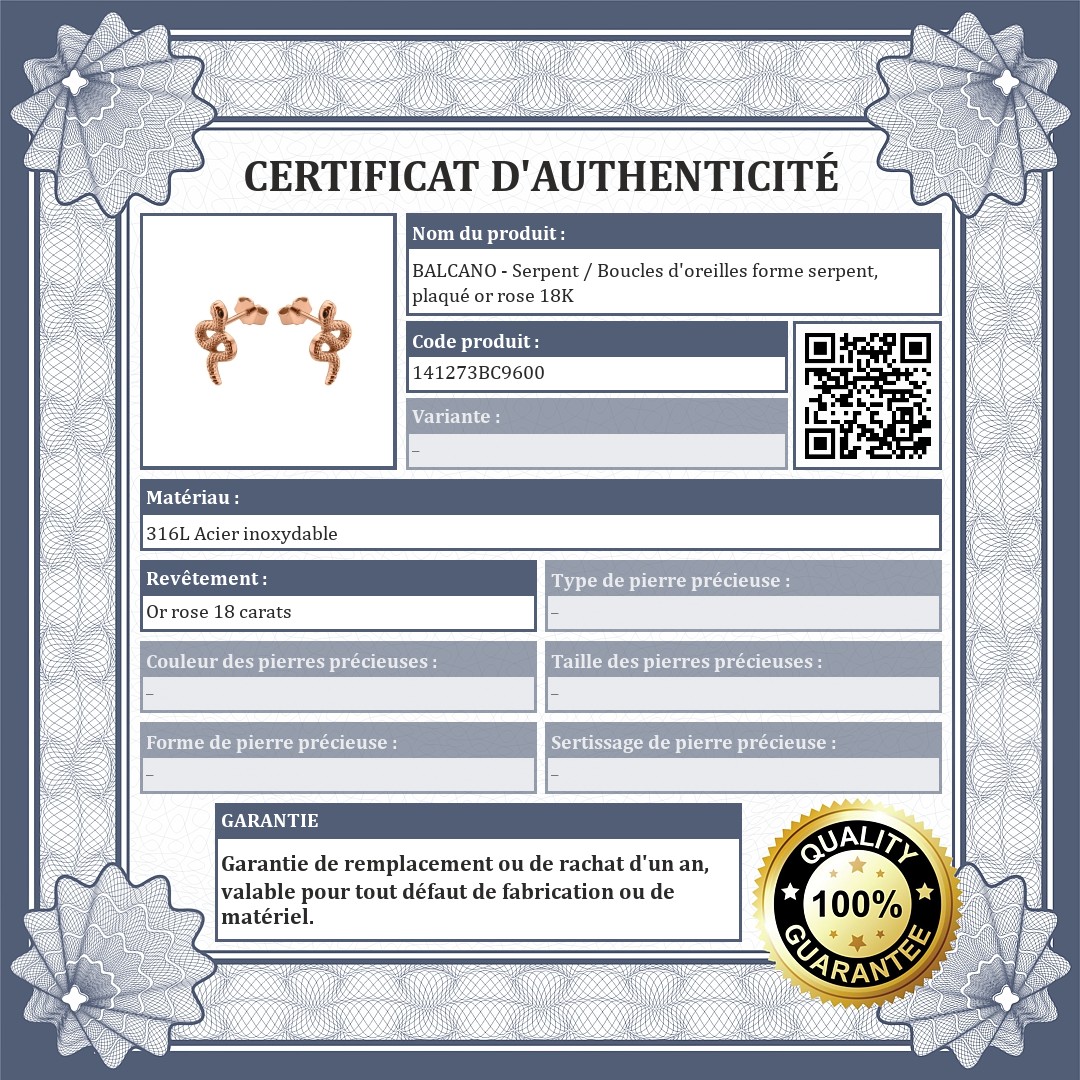BALCANO - Serpent / Boucles d'oreilles forme serpent, plaqué or rose 18K