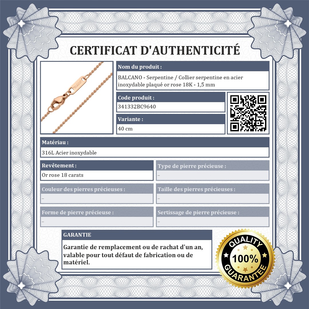 BALCANO - Serpentine / Collier serpentine en acier inoxydable plaqué or rose 18K - 1,5 mm