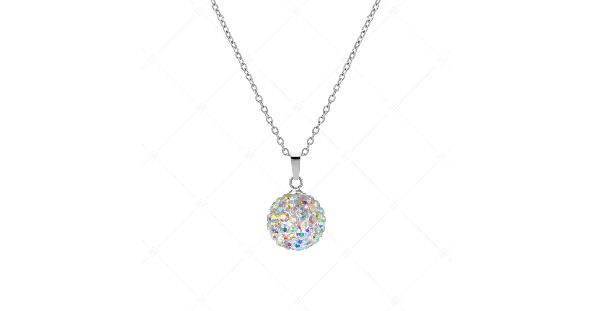 Pendentif sphérique tendance décoré de brillants cristaux tchèques avec un collier d'ancre aplati. Bijoux en acier inoxydable médical 316L, anti-allergène, avec polissage haute brillance, fermoir sécurisé.