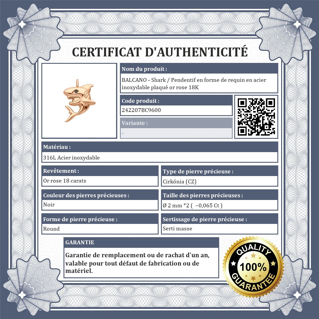BALCANO - Shark / Pendentif en forme de requin en acier inoxydable plaqué or rose 18K