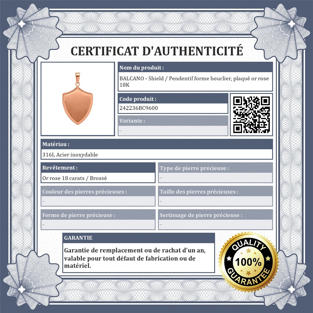 BALCANO - Shield / Pendentif forme bouclier, plaqué or rose 18K