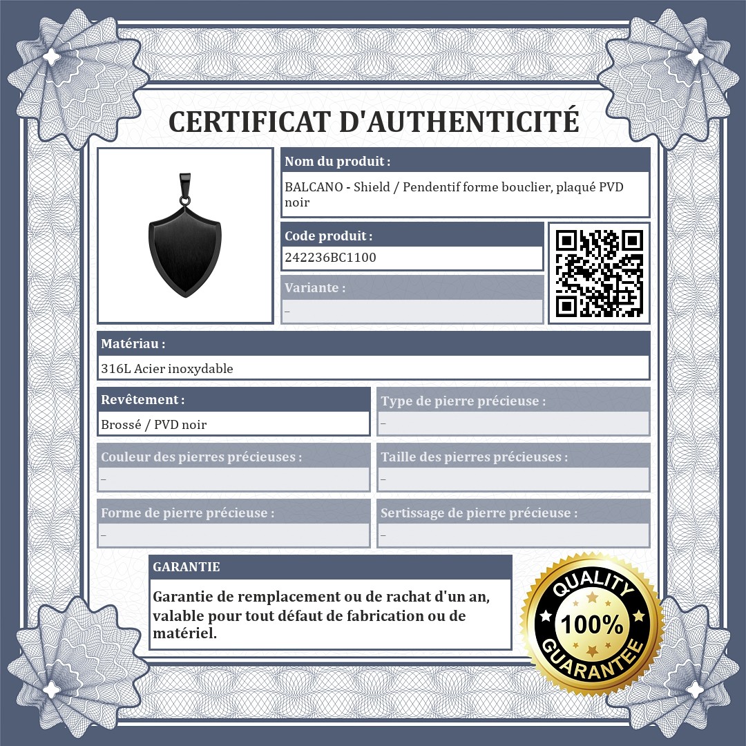BALCANO - Shield / Pendentif forme bouclier, plaqué PVD noir