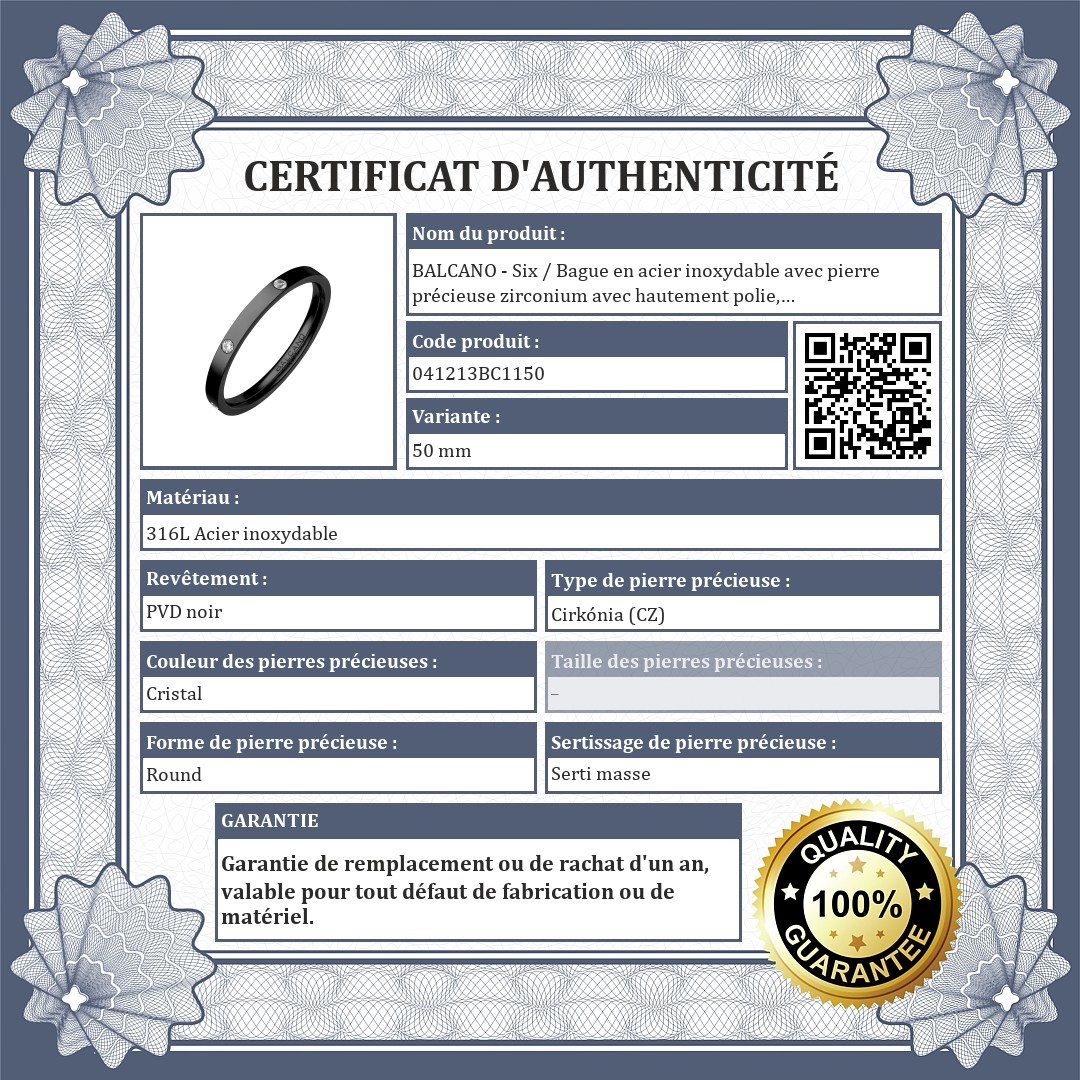 BALCANO - Six / Bague en acier inoxydable avec pierre précieuse zirconium avec hautement polie, plaqué PVD noir