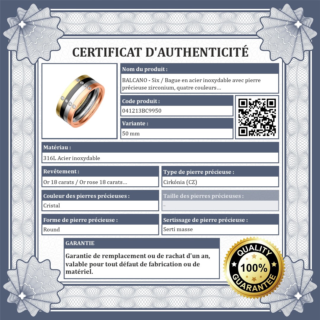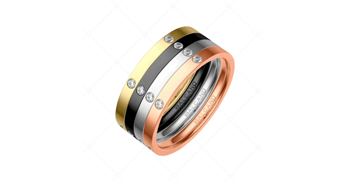 BALCANO - Six / Bague en acier inoxydable avec pierre précieuse zirconium, quatre couleurs en une