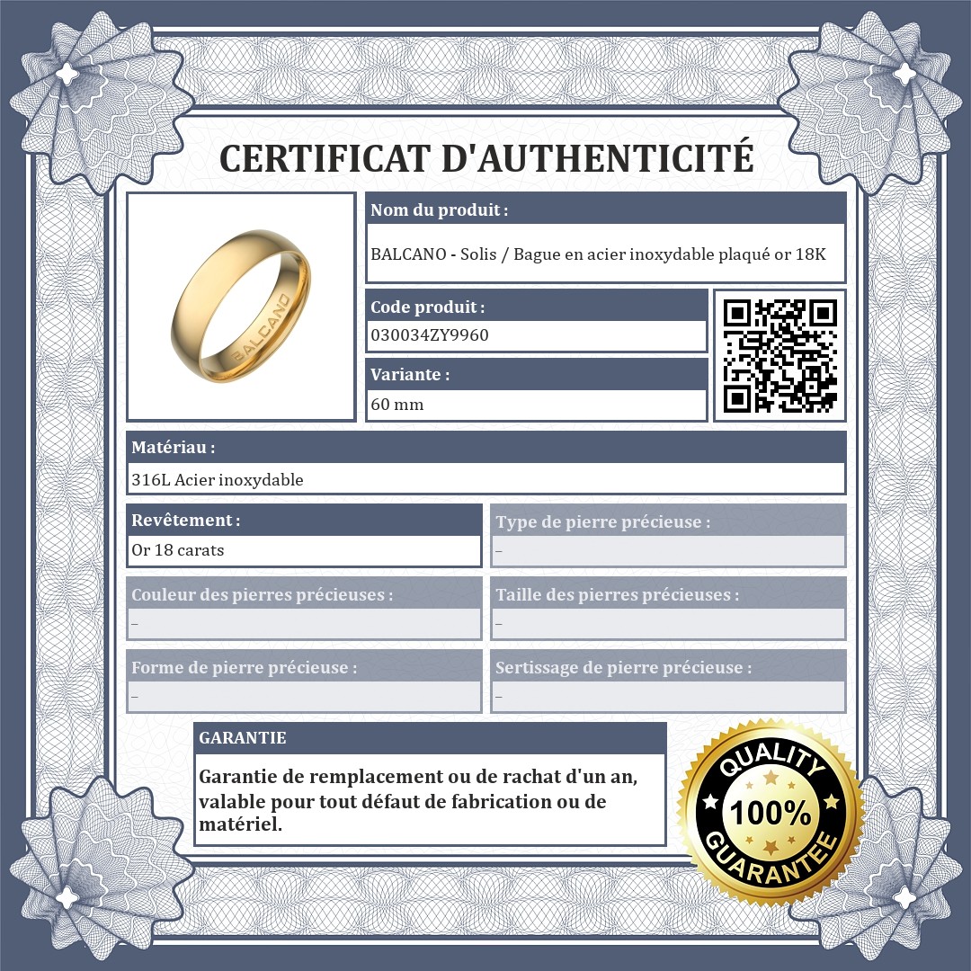 | Revêtement: | Or 18 carats |